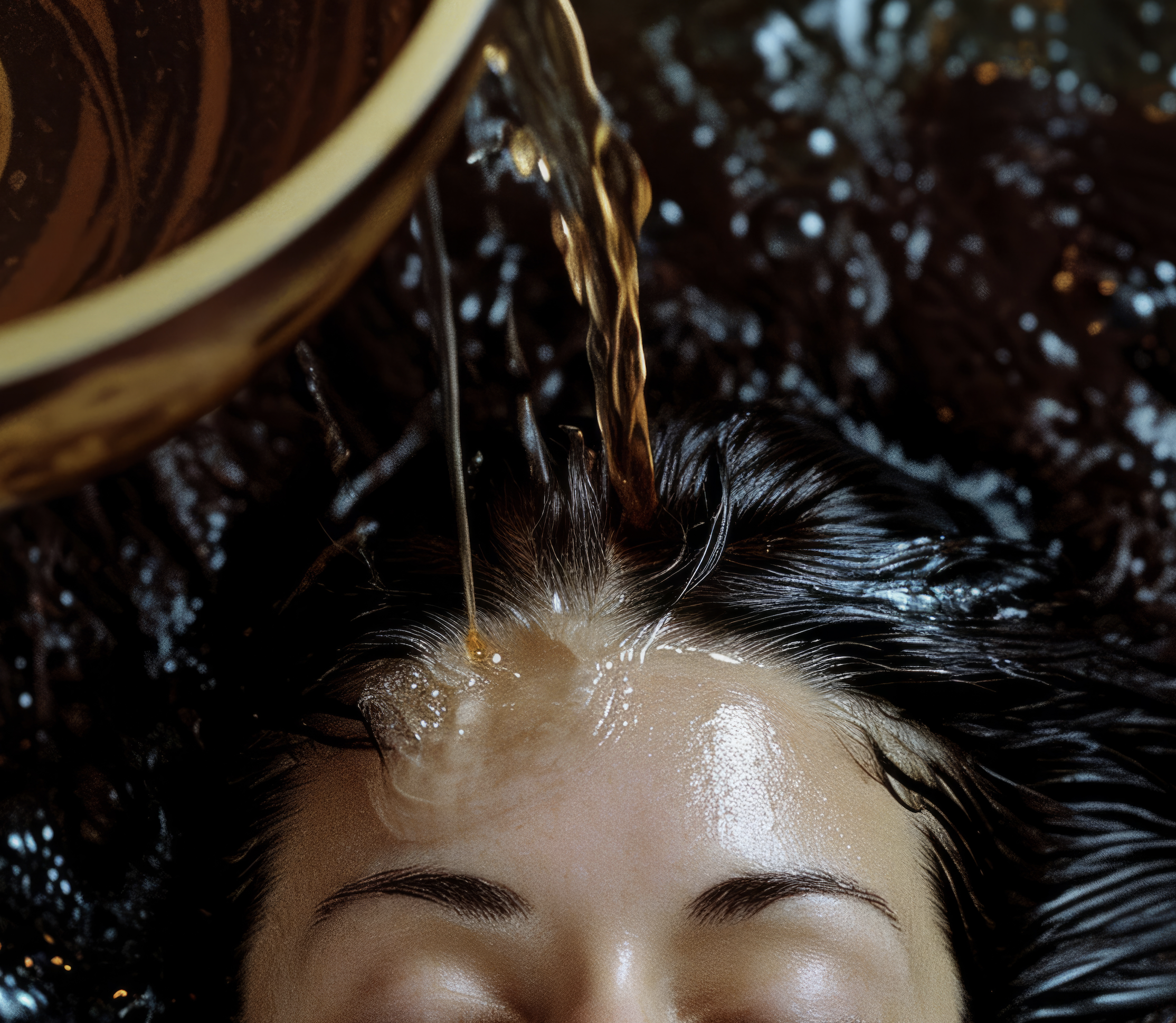 Versez l’infusion tiédie directement sur le cuir chevelu et les cheveux humides.